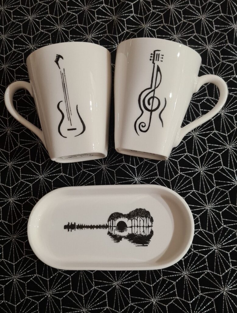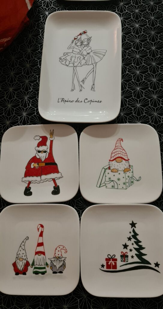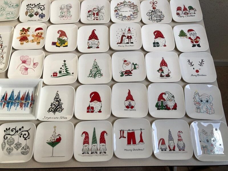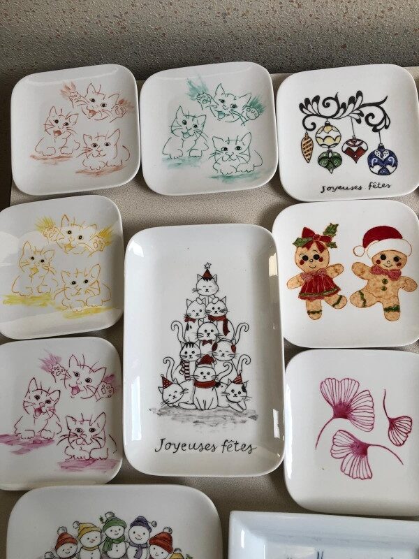 Chacune des participantes (pour l’instant, pas d’homme, mais pourquoi pas !) apporte son objet en porcelaine blanche à peindre, ses pinceaux et éventuellement son modèle. L’atelier dispose également d’une gamme de modèles pour les indécis.